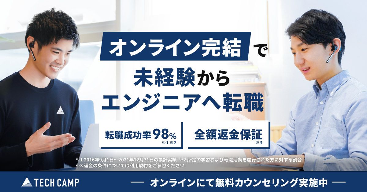 テックキャンプの無料カウンセリングに誘導するバナーです。