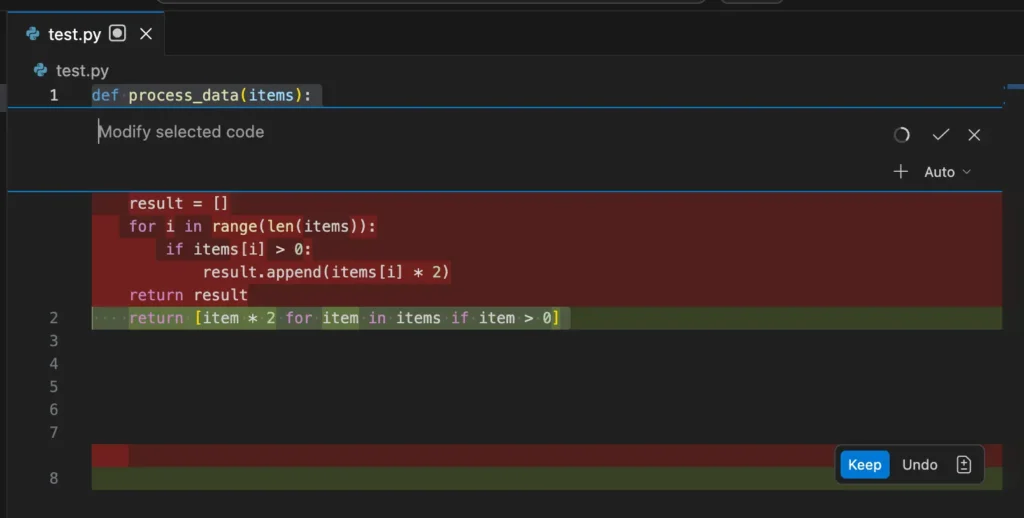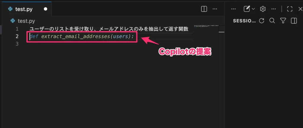 - コメント・ドキュメントの自動生成:関数の内容を解析して、docstringやJSDoc形式のコメントを自動で書いてくれます