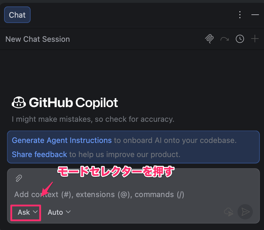 初めてAgentモードを使う方は、まずChatモードで基本操作に慣れてからステップアップするとスムーズです。