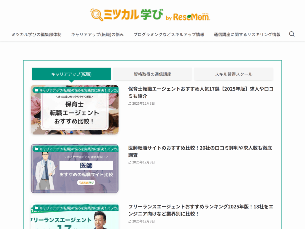 ミツカル学びは、教育訓練給付金やリスキリング補助金を活用して学び直したい方のための情報メディアです。プログラミングやWebだけでなく、公認会計士・税理士などの資格講座も対象に、どのコースが給付金・補助金の対象になるのか、適用後の実質負担額はいくらかをわかりやすく紹介しています。