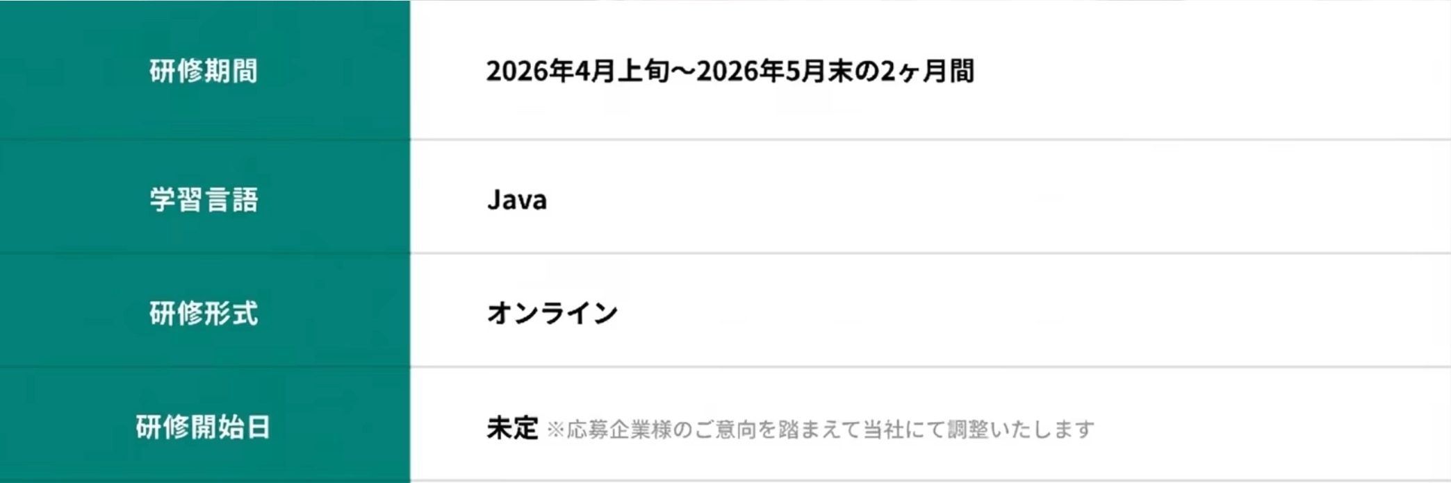 A. 同時期の研修実施に関して、最小人数5名〜のお申込みをお願いしております。